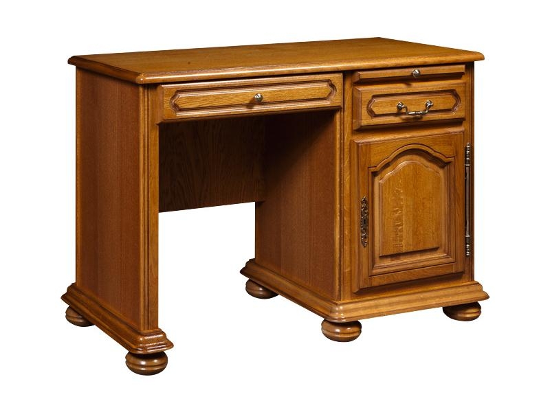 Компактный письменный стол «Давиль» гармонично впишется в интерьер детской комнаты, пространство небольшого кабинета или уголок гостиной. Классическая конструкция с одной тумбой выполнена из древесины благородного дуба, подчеркивающего классическую строгость линий. Вместительные полки и выдвижные ящики вместят большое количество бумаг, папок с документами и прочих канцелярских принадлежностей. Небольшую по площади столешницу можно увеличить с помощью выдвижной крышки. |