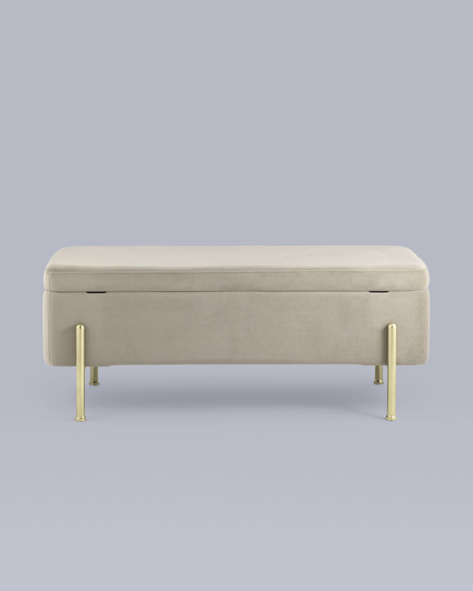 Болейн с ящиком велюр бежевый ножки из металла цвет золото |